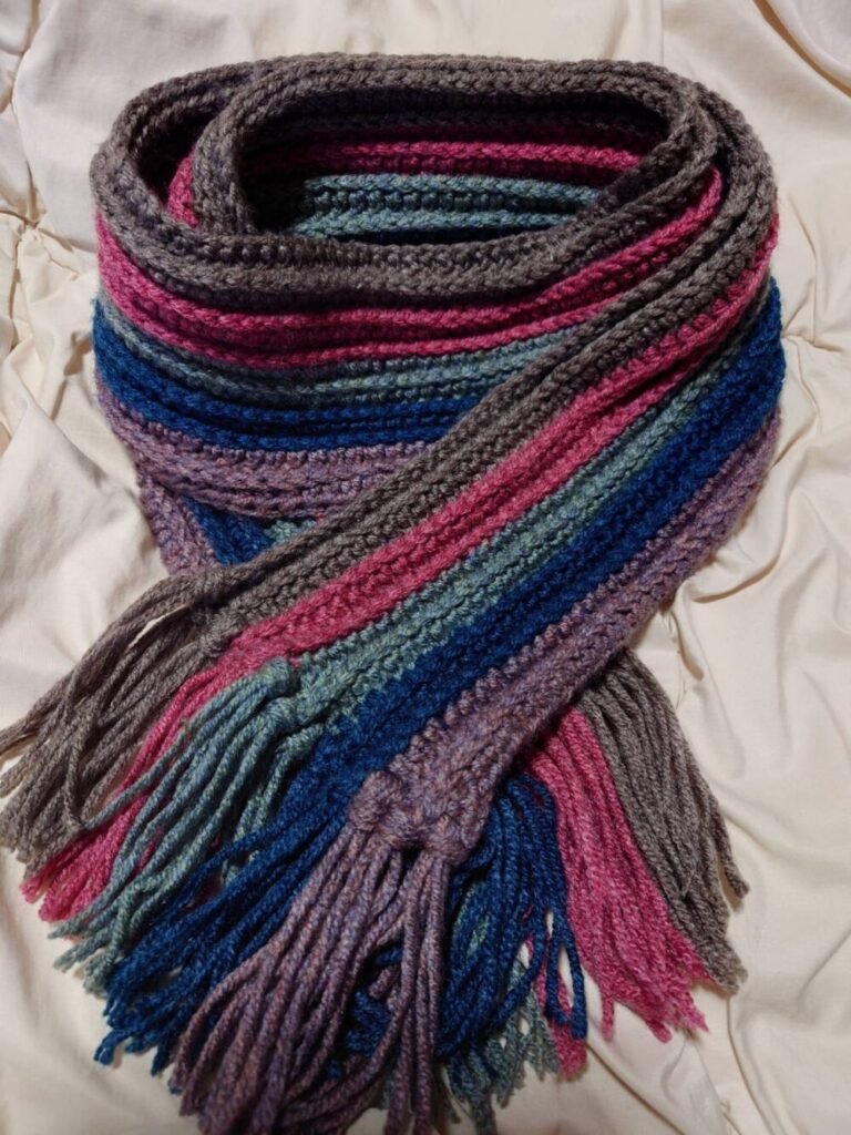 私が編み物🧶を始めたのは中学生の頃に母から教えて貰いした。最近はマフラー🧣を編み上げました。今は、大きめのブランケットと春先から使えるバックを編んでいます。